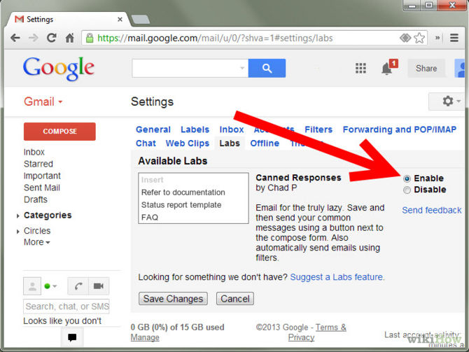 Estas Canned Responses podem ser activadas em Settings->Labs, e adicionam uma uma nova secção às opções que surgem quando clicam na pequena seta para expandir as opções dos emails de resposta. O que esta opção experimentar permite é criar emails típicos de resposta, que depois podem gravar com um nome ao vosso gosto. Daí em diante, sempre que receberem um email que mereça o mesmo tipo de resposta, basta ir à opção Canned Responses e escolher a resposta adequada.