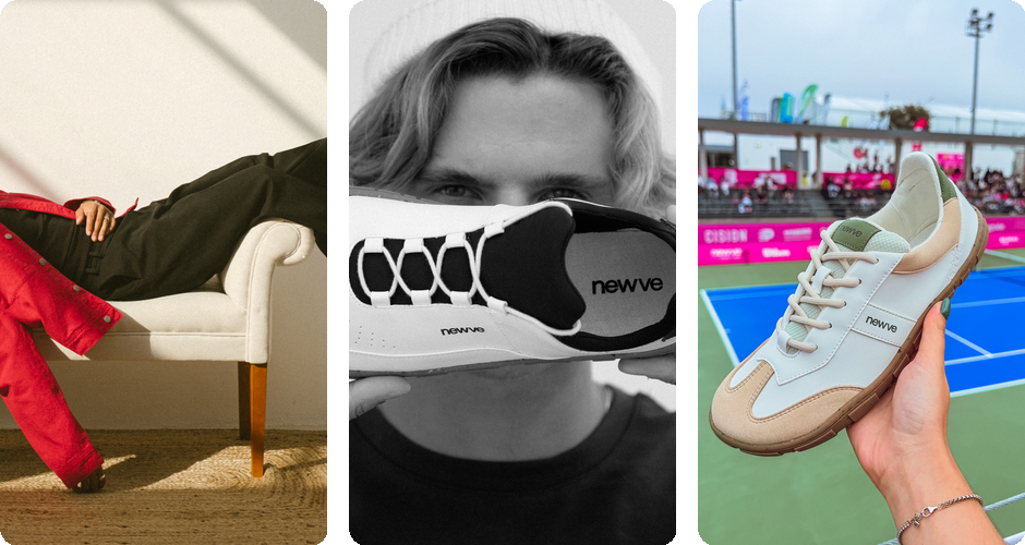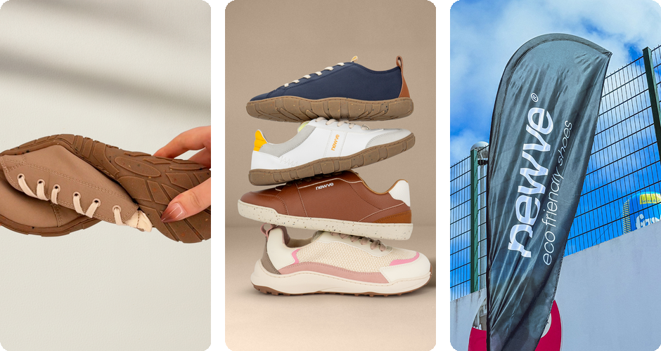Com mais de 37 anos de experiência na indústria do calçado, a NEWVE apresenta-se como uma marca que trabalha materiais eco-friendly e inovadores. Entre os materiais e soluções que a marca tem vindo a incorporar encontram-se, por exemplo, bolas de ténis em fim de vida, borras de café, subprodutos de cereais, maçã, Tencel, cortiça e solas recicladas, num esforço claro para dar uma segunda vida a materiais que de outra forma seriam descartados.